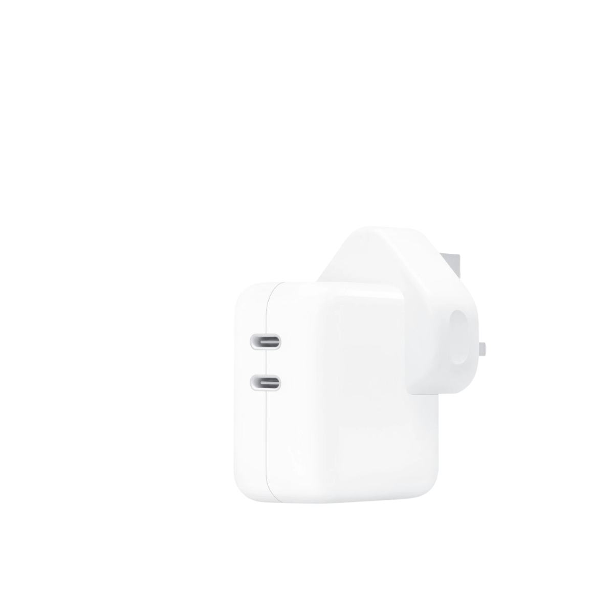 The 35W Dual USB‑C Port Power Adapter allows you to charge two devices at the same time, whether you’re at home, in the office, or on the go. Apple recommends using it with MacBook Air. You can also use it with iPhone, iPad, Apple Watch, and AirPods.